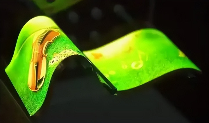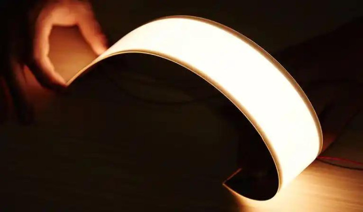 传统柔性OLED的构造不算复杂,大多是把有机发光层和电极沉积在可弯曲塑料基底上,靠电致发光原理发光。