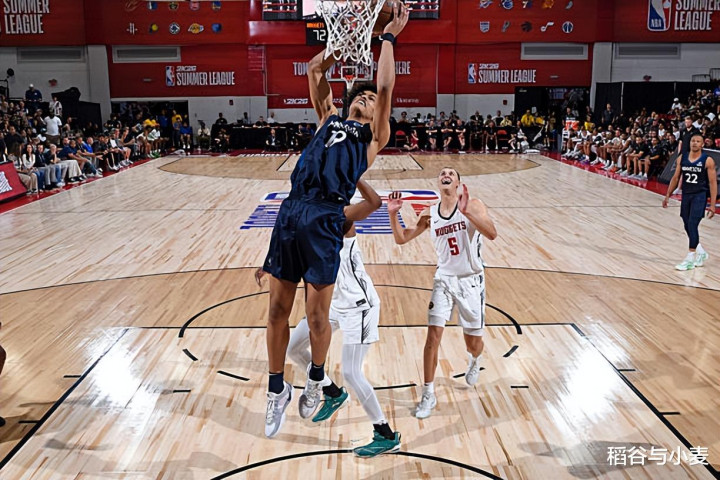 本场比赛中,森林狼的替补内线新秀若昂-贝兰热(Joan Beringer)的表现令人眼前一亮。贝兰热全场出场22分39秒,投篮8中6,罚球3中2,得到了14分4篮板1盖帽的数据,还有5次犯规,其中还包括了3个前场篮板,正负值为-6。贝兰热在进攻端也是展现出了相当不错的篮下得分能力和终结能力,他的出手次数其实并不多,但是他也是抓住了有限的机会拿下了大量的分数。贝兰热在防守端的表现同样是相当不错的,他能够利用自己在身体天赋和运动能力方面的优势展现出来,他也是将自己在防守端的特点发挥了出来。总体来看,贝兰热在本场比赛中的表现是远超大家预期的,他的成熟度和即战力似乎都要比大家想象中高出不少,他在攻防两端看起来都是能够起到一定的效果的。