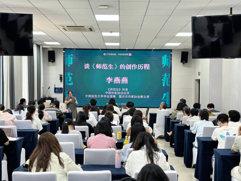 4月23日下午,2026年“全民阅读活动周”系列活动之“文学进校园·作家现场课《师范生》与师范生分享会”在重庆师范大学文学院举办。茅盾新人奖获得者、重庆市作协副主席、报告文学作家李燕燕作为《师范生》作者,现场与重师学子分享创作故事,在阅读对话中致敬教育者的坚守与奉献。活动由重庆师范大学文学院写作教研室主任高静波主持。